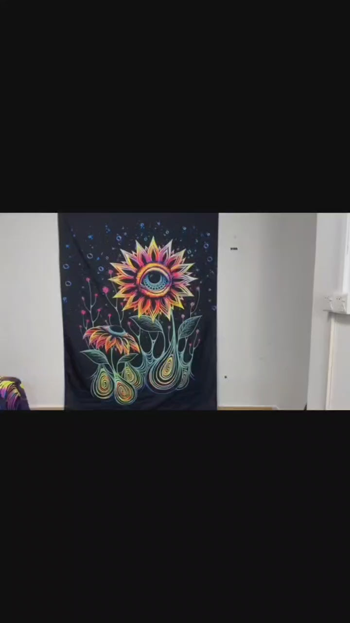 I’ve bought tapestries before but nothing like this. The colors pop under UV — feels like a totally different space when the lights go out.